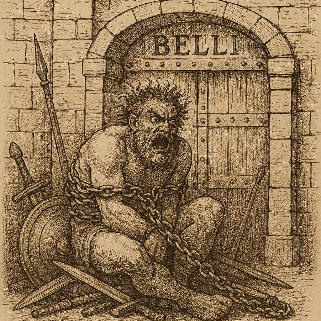 dirae ferro et compagibus artis claudentur Belli portae; Furor impius intus saeva sedens super arma et centum vinctus aenis post tergum nodis fremet horridus ore cruento.
